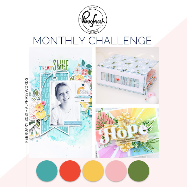 Happy Sunday and what a wonderful way to start the week and month then with a challenge. This month's Pinkfresh Studio Challenge features the use of alphas or word dies to jumpstart your creativity. So go ahead and break out your favorite alpha/sentiment dies, puffy stickers, and get crafting.